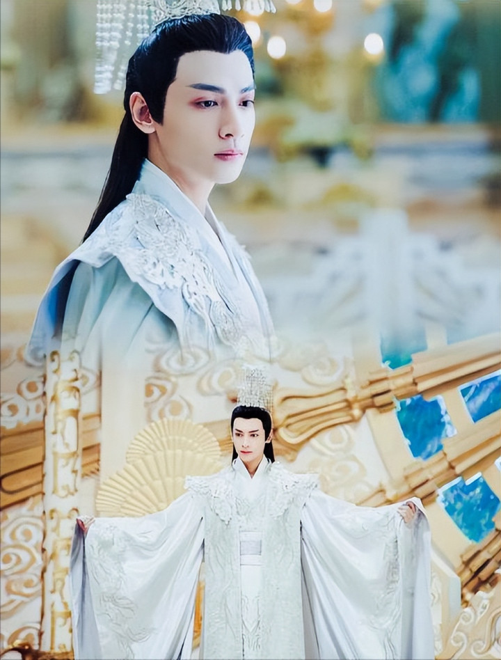 月白、淡蓝的衣服色系,再加上轻盈的衣料和有暗纹的锦缎服饰更让他看起来像个“天神”。